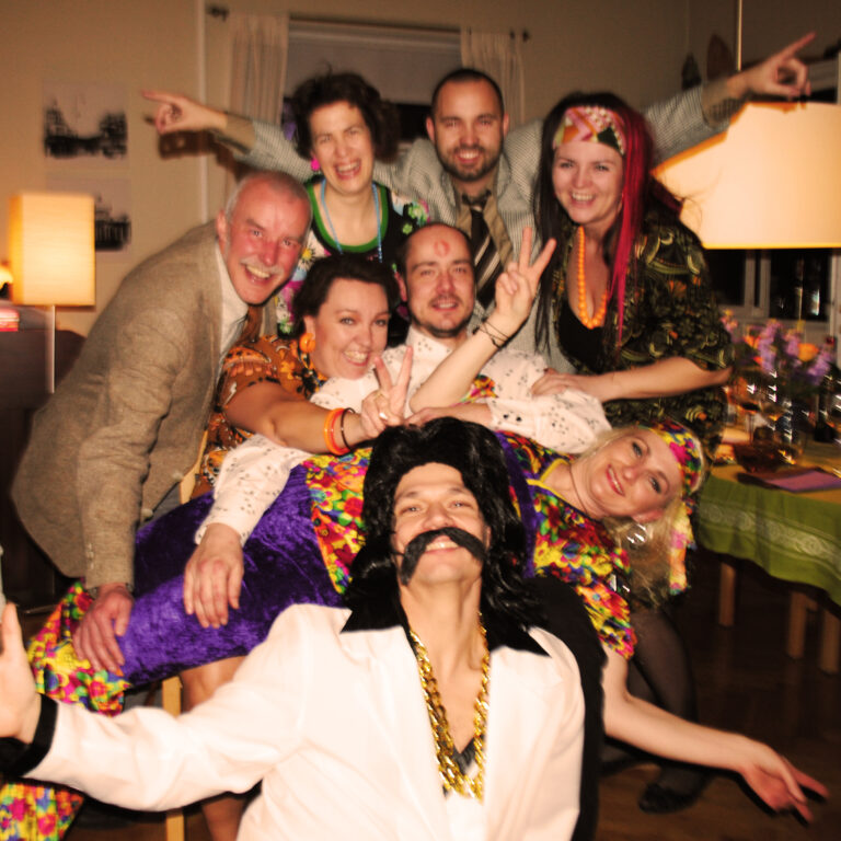 3. Vi forbereder vores tema og sender en invitation ud 14 dage før. Vi fandt hurtigt ud af at en uge var for lidt, når vi skulle købe udklædning.